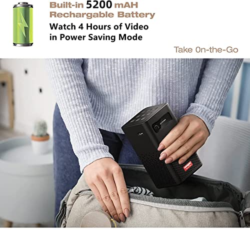 Missyee Mini Proiettore, 150ANSI Lumens DLP Videoproiettore incorporato Sistema Android 9.0 e Batteria, Supporti 1080P, HDMI, USB WIFI, Wireless Home cinema per iOS/Android - con Treppiede e Custodia