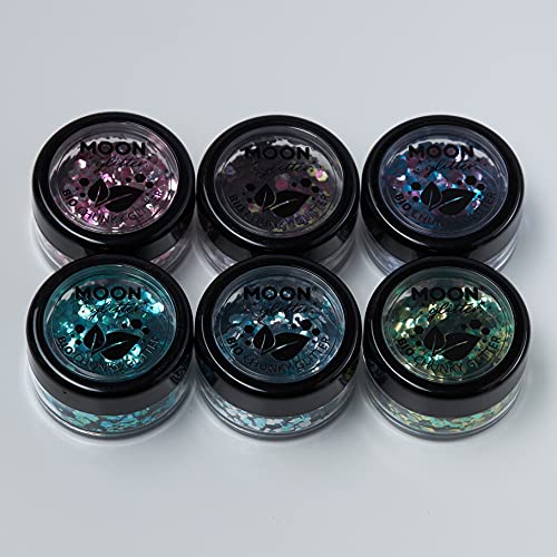 Mistica Glitter biodegradabili ed ecologici a pezzi della Moon Glitter - Glitter cosmetici per il volto, il corpo, le unghie, i capelli e le labbra - 100% Biologici - 3g - Set di 6 colori