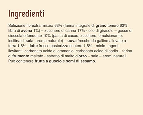 Misura Biscotti Integrali Fibrextra con Gocce di Cioccolato Fondente | 100% Farina Integrale | Ricchi in Fibre | Confezione da 290 grammi