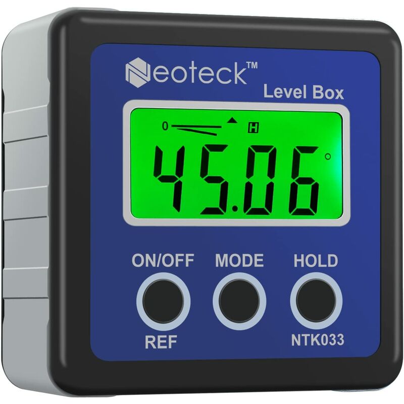 Misuratore angolare digitale - Il misuratore angolare digitale con campo di misurazione 4 * 90 °, piccolo e leggero, che lo rende comodo da usare e progettato per regolare o controllare gli angoli relativi tra le superfici, funzionando anche come vero livello digitale per punti stretti . 【Display LCD】 I valori possono essere facilmente letti sullo schermo LCD. 【Magneti incorporati】 Sulla base sono presenti potenti magneti incorporati che assicurano il fissaggio A qualsiasi superficie di ferro. 【Alta precisione】 Fornisce misurazioni precise, la cui precisione è di ±0,2 gradi. 【Spegnimento automatico】È alimentato da 2 x LR03 AAA Batteria, che non è inclusa e può spegnersi automaticamente dopo 3 minuti di funzionamento.
