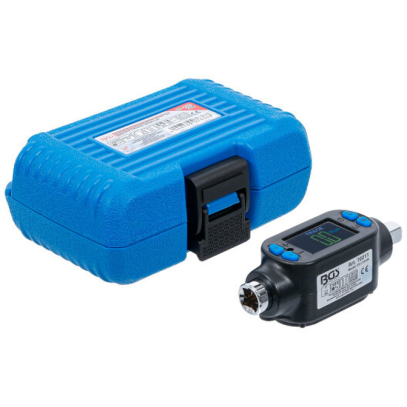 Adatto per il serraggio dei collegamenti a vite con coppia preimpostata può essere utilizzato come attacco dinamometrico con qualsiasi elemento di azionamento come un cricchetto reversibile convenzionale per serraggi controllati in senso orario e antiorario precisione di misurazione molto elevata, documentata con un certificato di prova ampio display LCD retroilluminato Modalità display: Track (visualizzazione continua) e Peak (rilevamento del valore di picco) con spegnimento automatico il raggiungimento della coppia desiderata è segnalato da un segnale acustico (buzzer) Risoluzione: 0,1 Nm Capacità di memorizzazione: 50 set di dati Modalità di lavoro: Peak & Trace Unità di misura: Kg-cm, Ib-in, Ib-ft, N-m Temperatura di stoccaggio: -20 °C - 70 °C (-4 °F - 157,9 °F) Altezza 35 mm Profilo di uscita Außenvierkant Profilo di azionamento Azionamento quadrato Coppia max. 135 Nm Dimensione del profilo di uscita, metrico 10 mm Peso del tessuto 0.366 Dimensione del profilo di azionamento