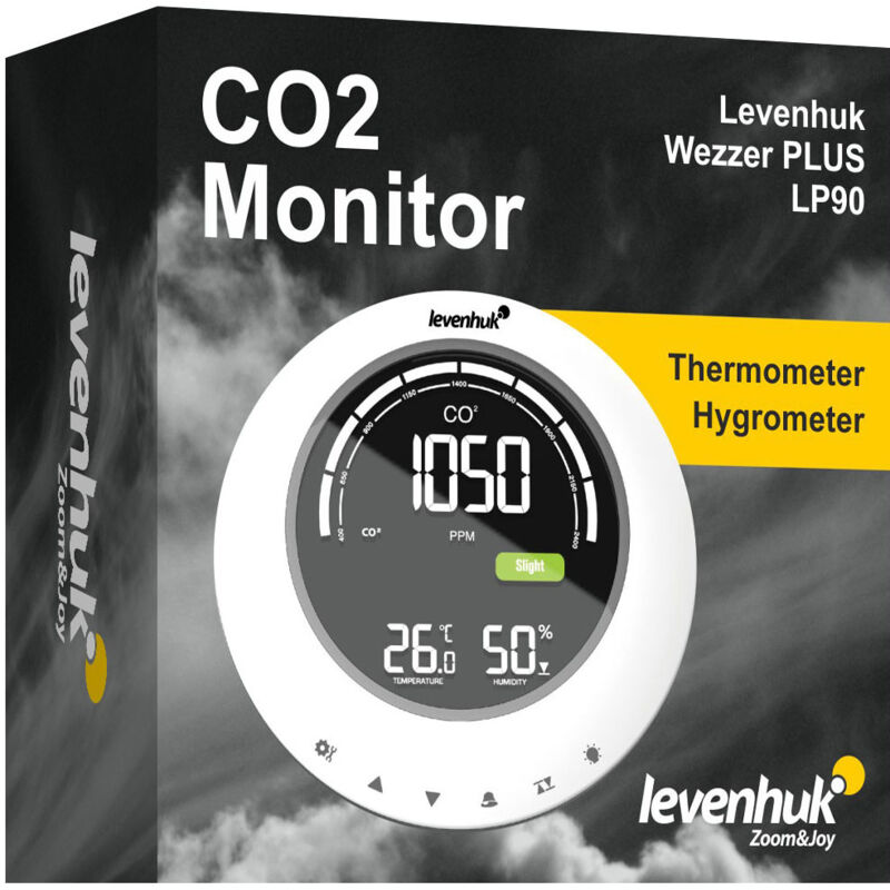 Il Levenhuk Wezzer PLUS LP90 è un misuratore compatto di CO₂ che può misurare anche la temperatura e l'umidità dell'aria. Questo piccolo dispositivo avvisa se i livelli di CO₂ o di umidità sono considerati troppo bassi o troppo alti, rendendo l'ambiente interno meno confortevole. Se la concentrazione di anidride carbonica supera il livello consigliato per gli ambienti ventilati, il dispositivo avvisa di ventilare la stanza. Sono presenti avvisi digitali sul display LCD a colori e avvisi sonori. Se si preferisce, è possibile disattivare il segnale acustico. Un'altra utile caratteristica del misuratore di CO₂ Levenhuk Wezzer PLUS LP90 CO₂ è la cronologia dei record massimi e minimi. Inoltre, il dispositivo calcola il livello medio di CO₂ ogni 15 minuti o 8 ore. Questo aiuta a determinare se c'era abbastanza ossigeno nella stanza mentre l'utente dormiva. Analizzando periodicamente i dati ottenuti e seguendo le raccomandazioni di ventilazione, l'utente può creare un ambiente più