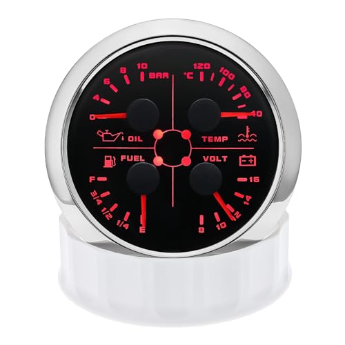 85 mm, 4 in 1, misuratore multifunzione, livello di carburante impermeabile 0-190 ohms, pressione dell'olio, misuratore della temperatura dell'acqua ℃/bar per auto, camper, barca, moto