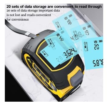 【Con archiviazione dati】 La misurazione del nastro laser a infrarossi 3 in 1 ha una funzione di archiviazione all'interno. Può memorizzare fino a 20 set di dati. Può essere richiamato per la visualizzazione e l'archiviazione in qualsiasi momento. Non devi più preoccuparti di non essere in grado di trovare i dati di misurazione registrati o di perdere dati.
