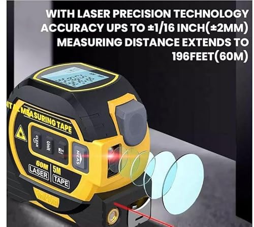 【Measurinsight 3-in-1 misurazione del nastro laser a infrarossi】 La misurazione del nastro laser a infrarossi 3-in-1 di Measurinsight include un misuratore di portata laser, un metro a nastro da 5 m e uno strumento di marcatura laser. Misura senza sforzo soffitti alti e altre aree difficili da raggiungere con il semplice tocco di un pulsante.