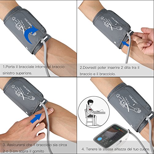 ✔ 2 Anni di Garanzia - La qualità è garantita da CE, ROHS,FDA. Il bracciale gonfiabile automatico copre un intervallo di circonferenza 22-32 cm. Se avete qualche domanda, non esitate a inviarci e-mail.