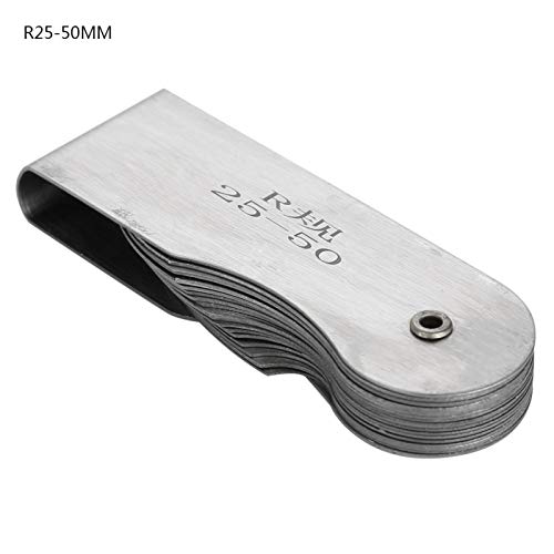 Misuratore del raggio, strumento portatile di misurazione dell'arco interno concavo concavo esterno in acciaio inossidabile, set di misuratori di raccordo del raggio(R25-50MM)