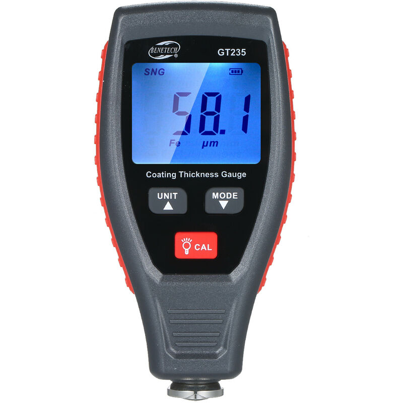 100μm, 1μm(≥100μm))/0.1mil/0.001mm Errore di misurazione: ≤150μm, ±5μm >150μm, ±(3%H+1μm) Diametro minimo del substrato magnetico: 12 mm Spessore minimo del substrato magnetico: 0,5 mm Raggio di curvatura minimo del substrato magnetico convesso: 2 mm Raggio di curvatura minimo del substrato magnetico concavo: 11 mm Diametro minimo del substrato non magnetico: 50 mm Spessore minimo del substrato non magnetico: 0,5 mm Ambiente operativo: -20~40℃, 10~95% RH Alimentazione: 2 batterie AAA da 1,5 V (NON incluso) Dimensione articolo: 121,5 * 62 * 27 mm /