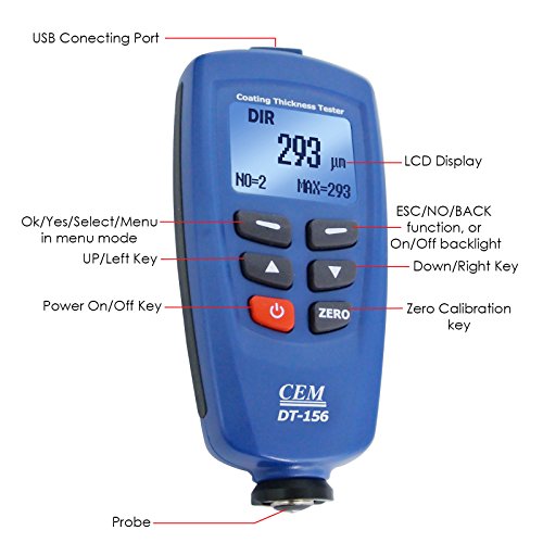 Misuratore Di Spessore Di Rivestimento Vernice CEM Digitale Calibro 1250um (49.2mils) Con USB E CD Software, F/NF Sonda Sensore, 400 Memoria, Ideale Per Laboratorio/Automobile