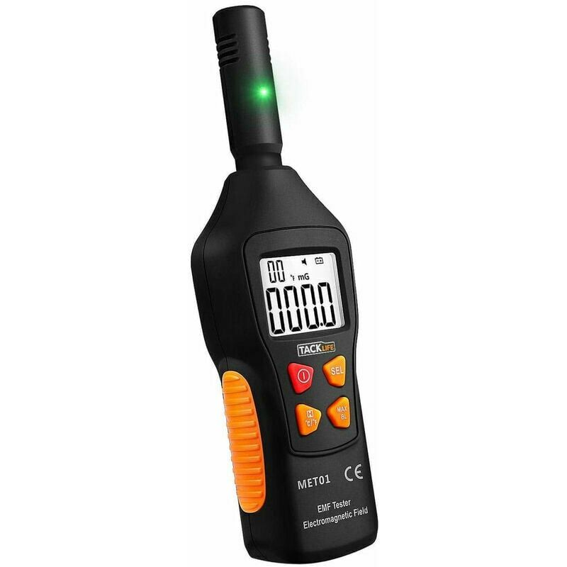 Tre funzioni?Un misuratore EMF con TRE applicazioni: campo elettrico, campo elettromagnetico e test di temperatura. La luce (verde, gialla e rossa) lampeggia per indicare le diverse intensità del segnale, l'unità di temperatura può essere commutata (? e ?) ?Suono di allarme? Se il risultato della misurazione supera un determinato valore, viene attivato l'allarme acustico. Se il suono della sveglia è troppo alto, puoi anche disattivarlo. È ampiamente utilizzato per misurare macchine generate elettromagneticamente, apparecchiature a bassa frequenza e apparecchiature a radiazione ad alta frequenza ?Funzione aggiuntiva? Schermo LCD e torcia, quando la luminosità non è sufficiente, è possibile attivare la modalità retroilluminazione premendo il pulsante ?Uso scenario di utilizzo? Adatto per l'uso domestico per misurare forni a microonde, TV, computer, router, telefoni cellulari, fornelli a induzione, cuociriso, frigoriferi, computer, cavi elettrici, ecc. Sono presenti fori che possono