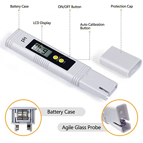 ❤ Ph meter digitale Temperatura di esercizio: da 0°C a 60°C. Dimensioni del pHmetro digitale: 15,5 x 3 x 1,5 cm. 1 set di polveri di calibrazione pH gratuite, facili da calibrare con le polveri di calibrazione pH 4,01 e 6,86 fornite in PH rendono le strisce più accurate. Altamente preciso per intervallo di misurazione 0-14 pH, risoluzione 0,01 pH, viene fornito con un cappuccio protettivo per prevenire lesioni agli elettrodi