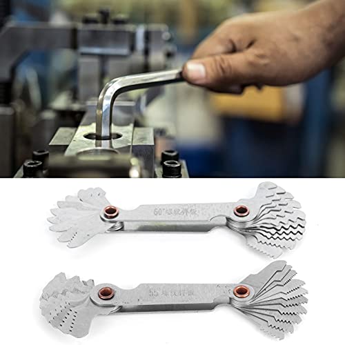 Set di Misuratori del Passo del Filetto da 2 Pezzi Metrico 60 ° Imperiale 55 ° Gage del Passo della Vite in Acciaio Inossidabile 20 Lame
