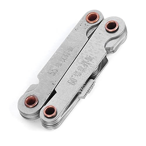【Metrico 60 ° Imperiale 55 °】 Il calibro di passo ha 20 lame di diverse dimensioni. Specifiche metriche 60°: 0,4, 0,45, 0,5, 0,6, 0,7, 0,75, 0,8, 1, 1,25, 1,5, 1,75, 2, 2,5, 3, 3,5, 4, 4,5, 5, 6,5. Specifiche 55° britanniche: 4, 4.5, 5, 6, 7, 8, 9, 10, 11, 12, 14, 16, 18, 19, 20, 22, 24, 28, 32, 48.
