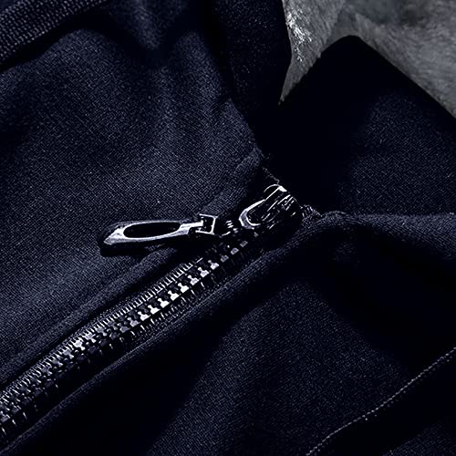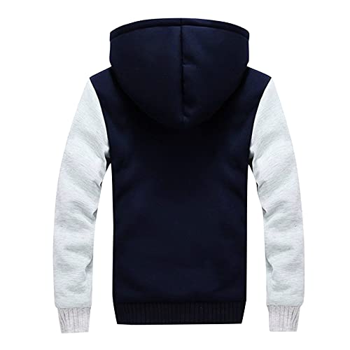 MITCOWBOYS Felpa da uomo con cappuccio, in pile, foderata in pile, con zip, felpa con cappuccio a maniche lunghe, Blu, L