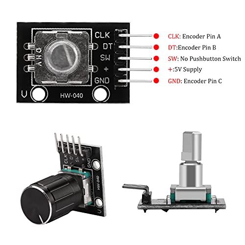 Mitening 5pcs 360 Gradi KY-040 Rotary Encoder Modulo Encoder Rotativo Potenziometro Digitale EC11 con Interruttore e Manopole Tappo per per Arduino Raspberry Pi