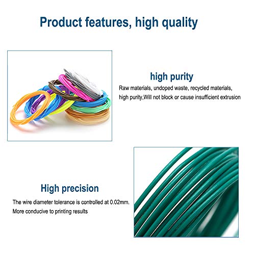 La lunghezza del filamento di 5 metri ciascuno e il totale di 18 colori diversi, su ogni sacco aspirato si trova la varietà di filamenti ""PLA"". La plastica si scioglie, quindi anche se si cambia colore, può essere facilmente lavorata e progettata in modo flessibile per preservare la qualità e la stabilità dei rotoli rimanenti.