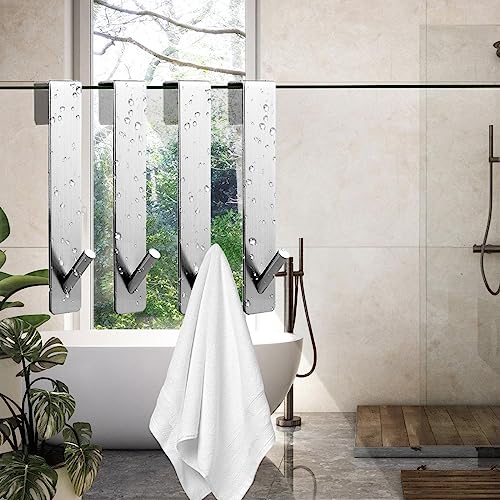Mitening Ganci per Porta Doccia, Porta Accappatoio Da Doccia, Acciaio Inossidabile Senza Foratura Gancio Porta Asciugamani Sopra Porta Doccia Senza Telaio per Bagno (Argento)