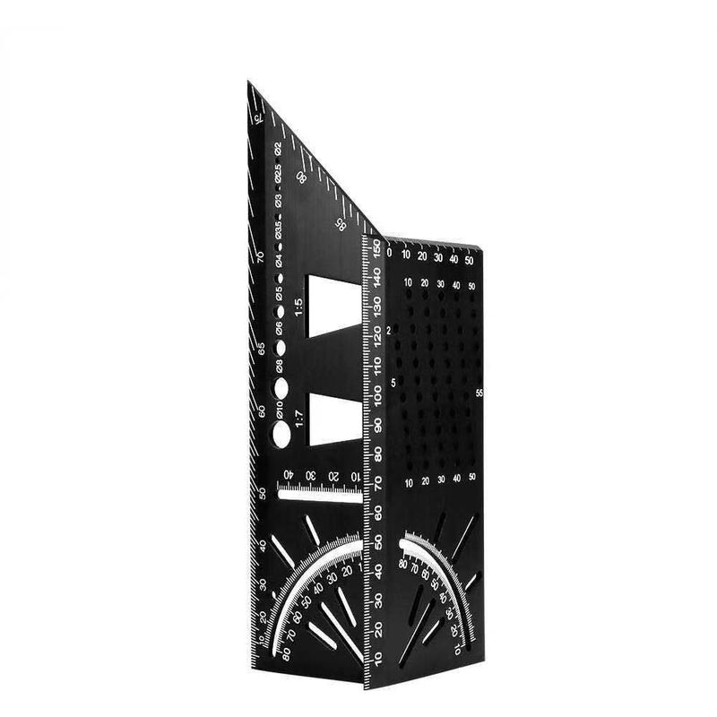 Universale - 1 Sono disponibili più di 10 funzioni: quadrato, goniometro, dima a coda di rondine, foro tondo, linea parallela, linea verticale, posizionamento della punta, incisore a T, angolo di 45°, angolo di 90°. Ad esempio il colore della dimensione dell'etichetta. Misura e trasferisci le dimensioni dell'angolo. 【Materiale robusto】 Il righello per la lavorazione del legno è realizzato in lega di alluminio di alta qualità. Il materiale reale non è deformato, anticaduta e anticorrosione. Rispetto ad altri righelli di plastica, è più resistente. Questo è un ottimo regalo per un falegname o un idraulico. 【Precisione di misurazione】 Questo quadrato per la lavorazione del legno ha una lettura chiara e un design 3D, quindi non è necessario girarlo durante la misurazione. Basta scorrere a sinistra e a destra per contrassegnare angoli di 45 gradi. Rispetto ad altri righelli in plastica, è più preciso. 【Ampie applicazioni】 I quadrati per la lavorazione del legno sono adatti per elementi