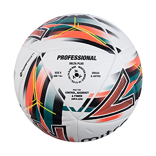 Mitre Delta Plus - Pallone da calcio professionale, unisex, colore: Bianco/Nero/Arancio Sangue