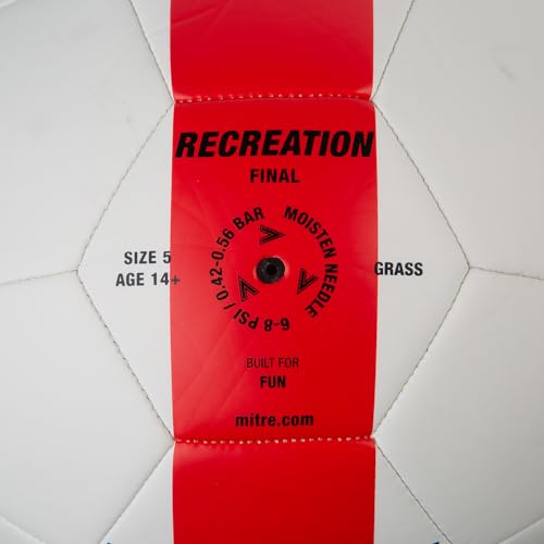 Mitre Final Pallone per calcio ricreativo, ottimo per bambini, regalo di calcio, bianco/rosso, 4