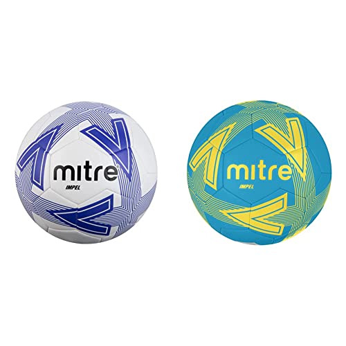 Mitre Pallone da calcio Impel, Bianco/Dazzling Blue/Nero, 5 & Pallone da calcio Impel, Azzurro cielo/Giallo fluorescente