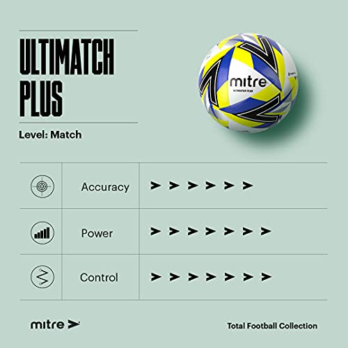 Mitre Ultimatch Pallone da calcio, controllo ottimizato, ottima durata e precisione, giallo/argento, 3