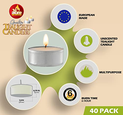 Ner Mitzvah Candele Tealight - Set da 40 Candele Bianche Sfuse - Candele Piccole - Lumini Bianchi Made in Europe - 6 Ore