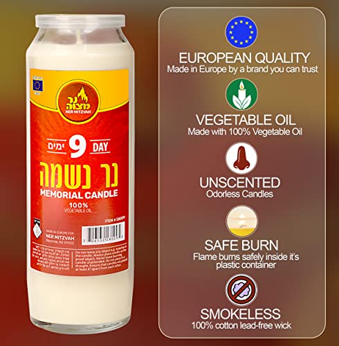 Candela da 9 giorni: perfetta per l'uso su Yom Tov, per celebrare l'anniversario del passaggio di una persona cara su uno yahrzeit, o per commemorazioni.