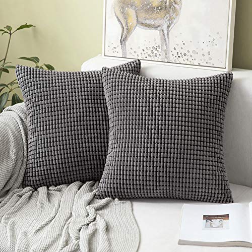 MIULEE Confezione da 2 Federa Granula per Cuscino Fodera Morbido Quadrato Decorativo per Divano Lettoin Misto Poliestere 65X65 cm Grigio Scuro