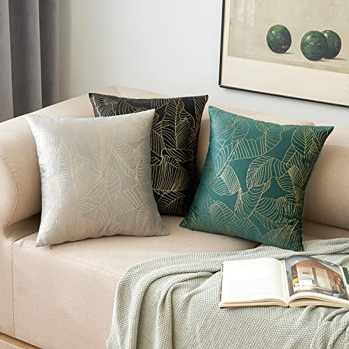 MIULEE Copricuscini in Velluto Stampati a Foglia Federe Cuscini per Divano Camera da Letto Quadrate Federa Decorativa per Letto Matrimoniale Fodere Moderne 2 Pezzi 45X45 CM Verde Scuro