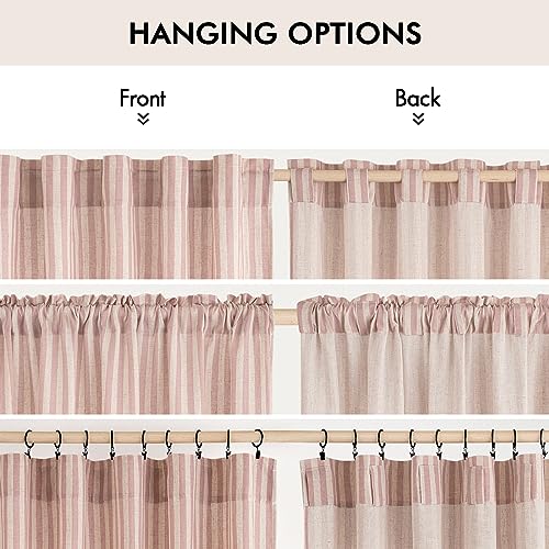 MIULEE Effetto Lino Tenda a Righe per Interni Soggiorno, Tende Semioscuranti con Motivo a Righe Rosa Verticali, Tende Camera da Letto con Tasca per Asta e Linguetta Posteriore, 2 Pezzi, 2x 140x260cm
