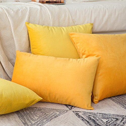 MIULEE Federe Cuscini Arredo Divano Copricuscini Soggiorno Federe Arredamento Casa Moderni Elegante Morbido Resistente in Velluto con la Cerniera Invisibile 2 Pezzi 55X55 CM Giallo Arancio