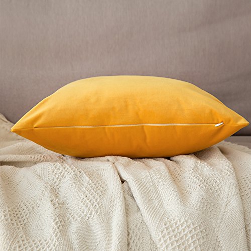 MIULEE Federe Cuscini Arredo Divano Copricuscini Soggiorno Federe Arredamento Casa Moderni Elegante Morbido Resistente in Velluto con la Cerniera Invisibile 2 Pezzi Giallo Arancio 40X40 CM