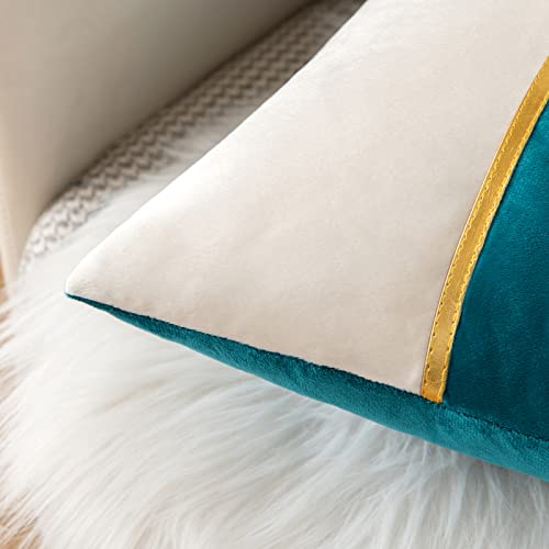 MIULEE Federe Cuscini per Divano in Velluto con Linea d'Oro Copricuscini per Camera da Letto Federa per Letto Matrimoniale Moderna Cameretta Decorativa Arredo 2 Pezzi 50X50 CM Blu-verde