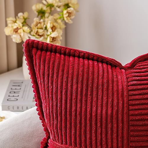 MIULEE Federe in Velluto a Coste Decorative Fodere Federe Cuscni Natalizio Morbido Copricuscini Cuscino Federe per Divano Moderne Comodo Robusto per Camera da Divano Letto 2 Pezzi Rosso 50x50 cm