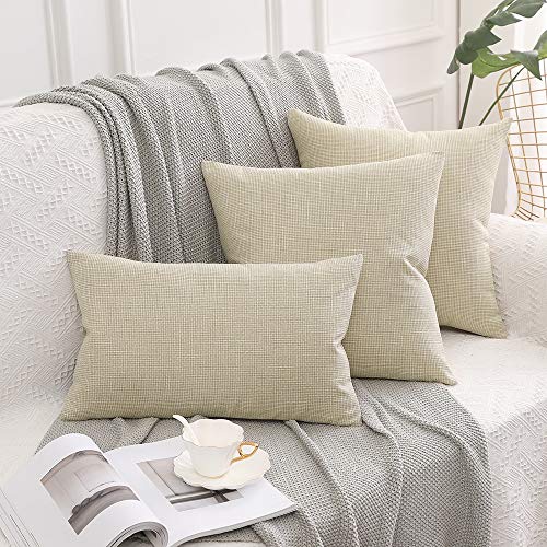 MIULEE Fodere Cuscini per Divano Copricuscini in Finto Lino Rettangolari Decorativi per Camera da Letto Salotto Letto Matrimoniale Federe per Soggiorno Moderna 2 Pezzi 30X50 CM Bianco Crema