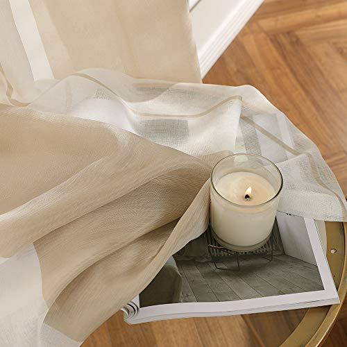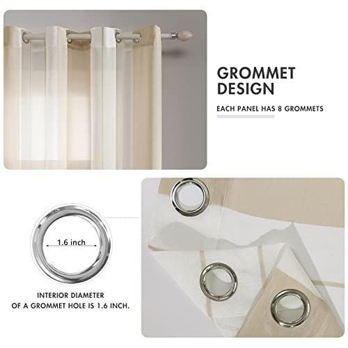 MIULEE Lino Voile Tenda Finestra con Occhielli Tenda a Pannello Tende a Vela Trasparente per Soggiorno e Camera da Letto 2 Pezzo Set Bianco+Beige 140X175Cm