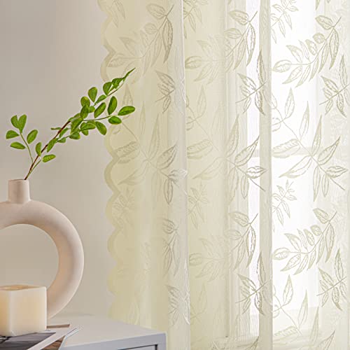 MIULEE 2 Pannelli Tende con motivo di pizzo a foglie con Occhielli Moderna Lavabile Elegante per Camera da Letto Soggiorno Cucina 150X245 CM Beige