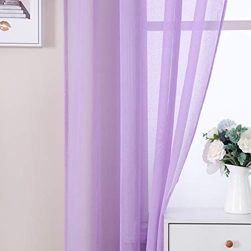 MIULEE 2 Pezzi Tende Voile Trasparenti in Poliestere Resistente con Passanti per Camera da Letto Soggiorno Salotto 140X215 CM Viola Chiaro