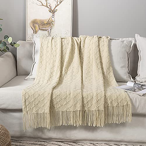 MIULEE 1 Pezzo Coperta a Maglia Morbido Moderna Resistente per Divano Letto Decorazioni Casa Singolo Coperta Divano Inverno Boho Lavabile 150X200 CM Bianco Crema