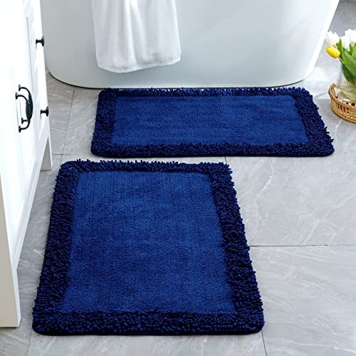 MIULEE Tappetino per Salotto Antiscivolo Microfibra Ingresso Ciniglia Camera da Letto per Bagno Lavabile Casa Tappeto Lavabile Soggiorno Zerbino Assorbente 1 Pezzi Tappeti 40X60 CM Blu Scuro