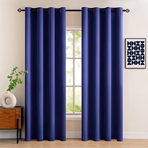 MIULEE Tende Camera da Letto Interni Soggiorno Interni Oscuranti 2 Pannelli Termiche Isolanti con 8 Occhielli Tinta Unita per Casa Finestre Moderne Soggiorno Camerette Bambini 140X260 CM Blu Scuro