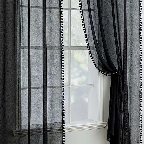 MIULEE Tende Camera da Letto con PON PON, 2 Pezzi Nero Corallo Tende per Finestre Soggiorno (2X L 140 x A 245cm), Trasparenti Tende con Anelli, Tende Cameretta Bambini con Pompon, Tende Interni Casa