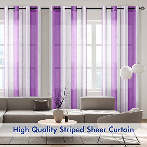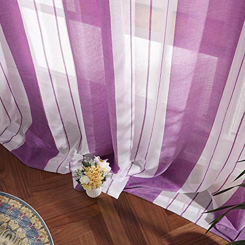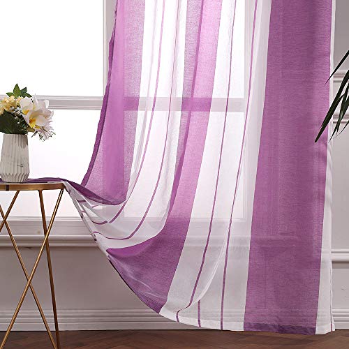 MIULEE Tende per Finestre Tende Trasparenti in Voile Camera da Letto Voile per Soggiorno e Casa con Occhielli 2 Pannelli 140x260 CM Bianco e Porpora