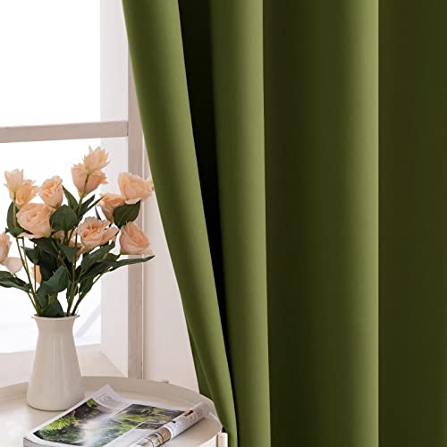 MIULEE Tende Oscuranti Soggiorno Interni Oscuranti 2 Pannelli Termiche Isolanti Poliestere con 8 Annelli Opaco per Salotto Moderni Cucina Cameretta Verde Oliva 140x245 CM