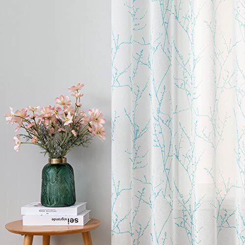 MIULEE Tende 2 Pannelli Semi-trasparenti con Annelli Classico con Rmi per Cameretta Bambini Soggiorno Bagno Resistente Privata 140X260 CM Celeste