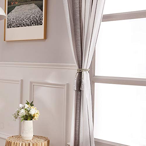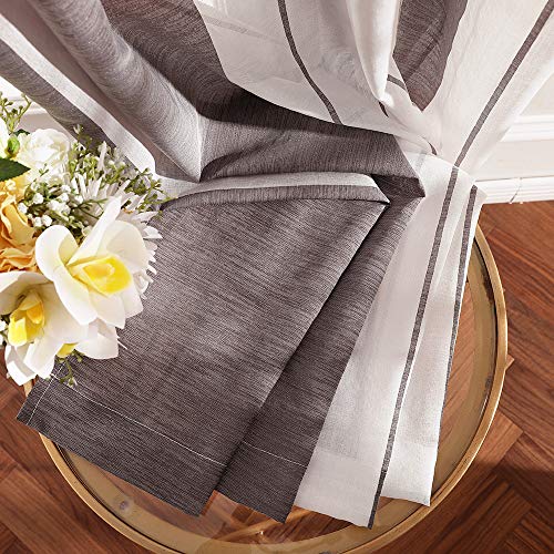 MIULEE Tende a Righe per Interni, Tende Trasparenti in Voile Tende Camera da Letto, Tenda Salotto Moderne con Anelli, Tenda a Pannello da Interno Finestra a Righe Bianche e Marrone Scuro, 2x 140x225CM