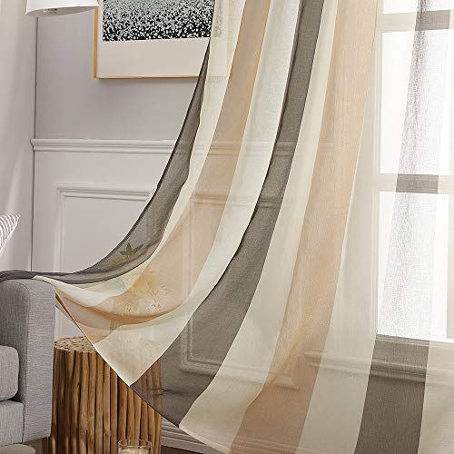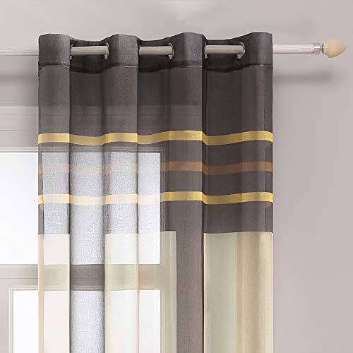 MIULEE Tende Salotto Trasparenti Voile a Righe per Soggiorno e Camera da Letto 2 Pannelli Tende Finestre Moderne con Anelli 140 X 260 CM Marrone Cachi
