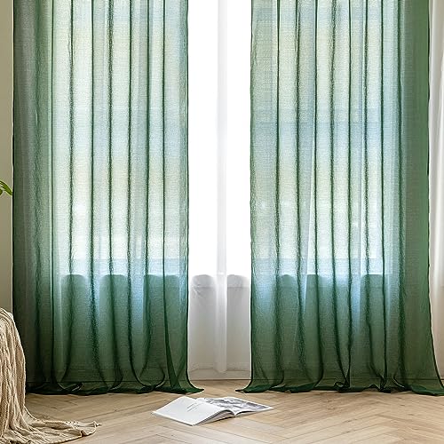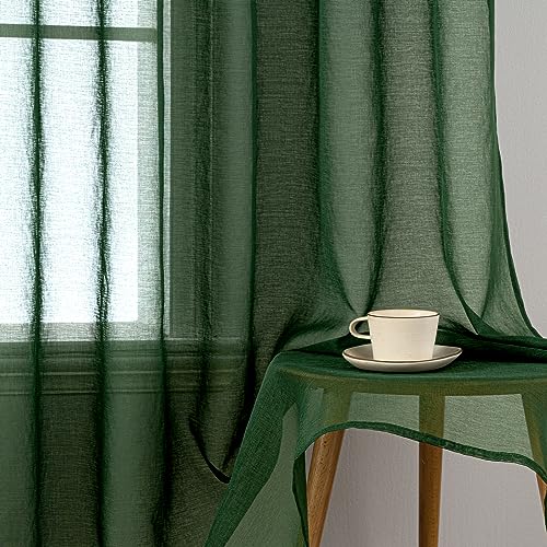 MIULEE Tende Trasparente Tenda per Interni Voile Trasparenti Camera da Letto Adatte Con Anelli Soggiorno Moderne Eleganti 2 Pezzi Verde Scuro 140 x 225 CM