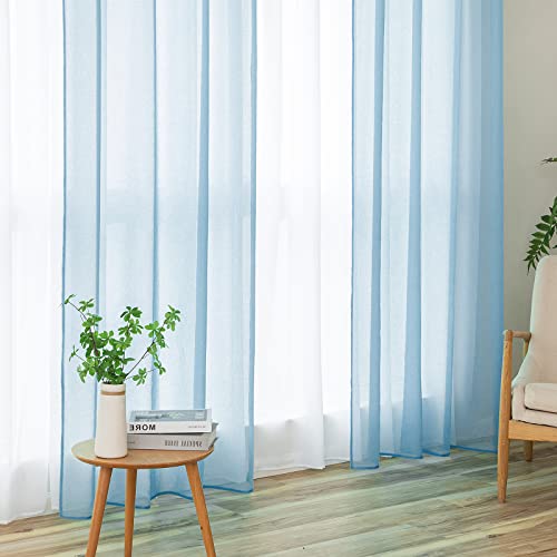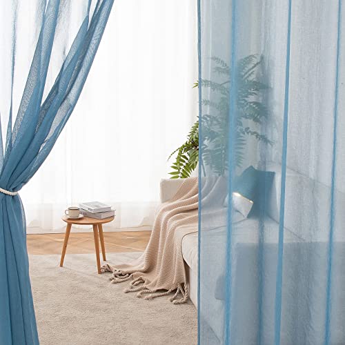 MIULEE Tende Trasparenti in Voile con Occhielli Morbidi Finestre per Camera da Letto e per Salotto Eleganti Soggiorno 2 Pannelli 140x260cm Blu Acciaio